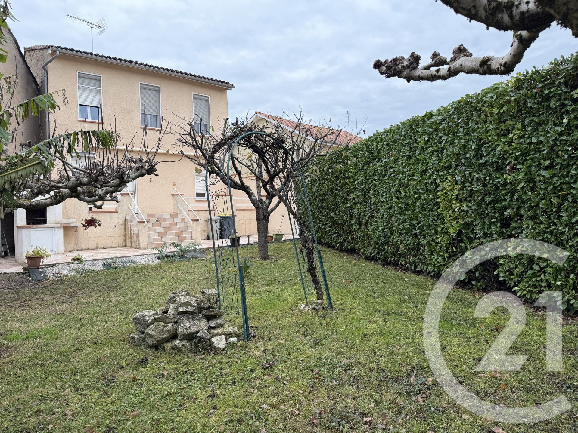 * Grande terrasse carrelée de 25 m², jardin intime, ombragé et sans vis-à-vis, parfait pour vos moments ensoleillés .